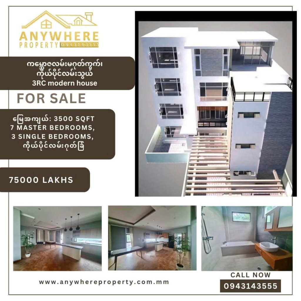 ကမ္ဘောဇလမ်းမဂုတ်ကွက် 3RC modern house လုံးခြင်းအရောင်း 3500 sqft 7 master bedrooms, 3 single bedrooms, ကိုယ်ပိုင်လမ်းဂုတ်ခြံ