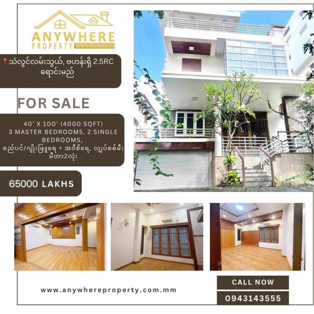 | Feature | သံလွင်လမ်းသွယ်, ဗဟန်းရှိ 2.5RC ရောင်းမည် မြေအကျယ်- 40’ x 100’ (4000 sqft) 3 Master bedrooms, 2 single bedrooms, Living rooms, စည်ပင်/ဂျိုးဖြူရေ + အဝီစိရေ, လျှပ်စစ်မီး မီတာ2လုံး |